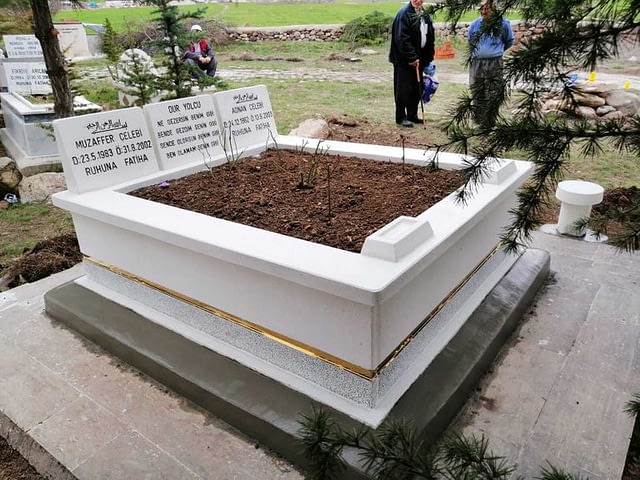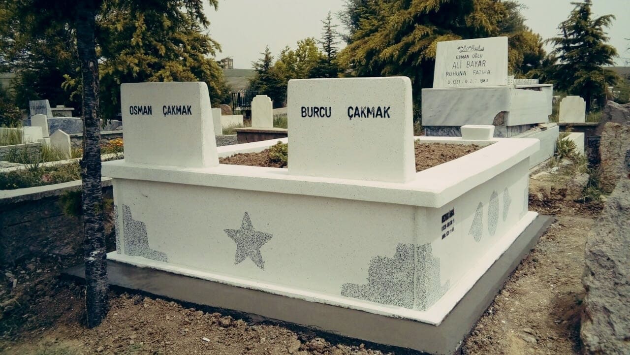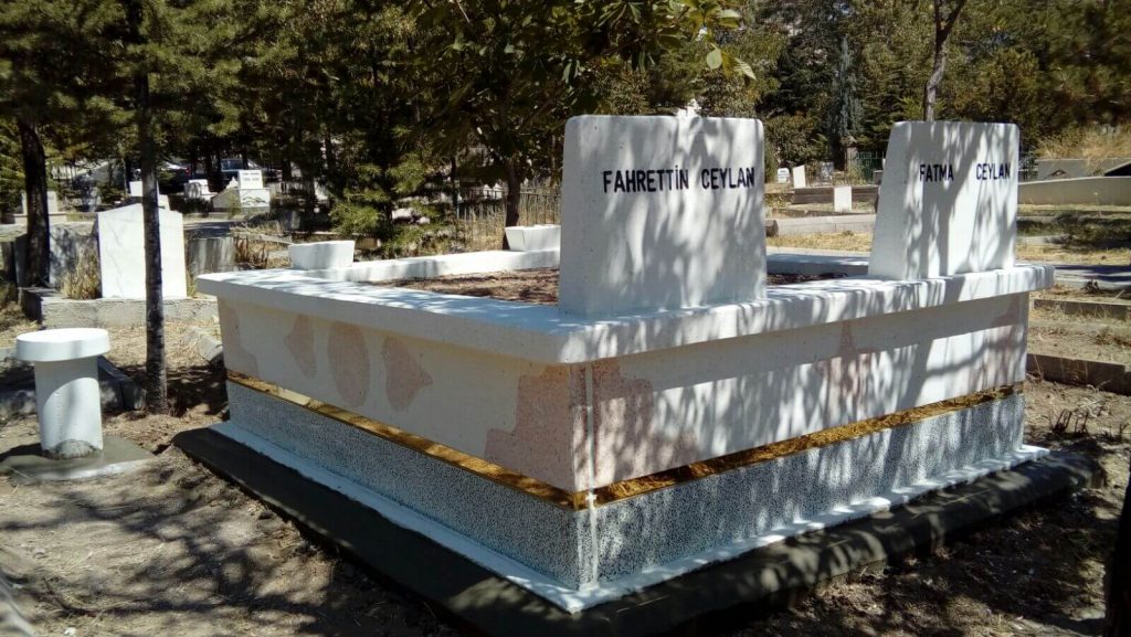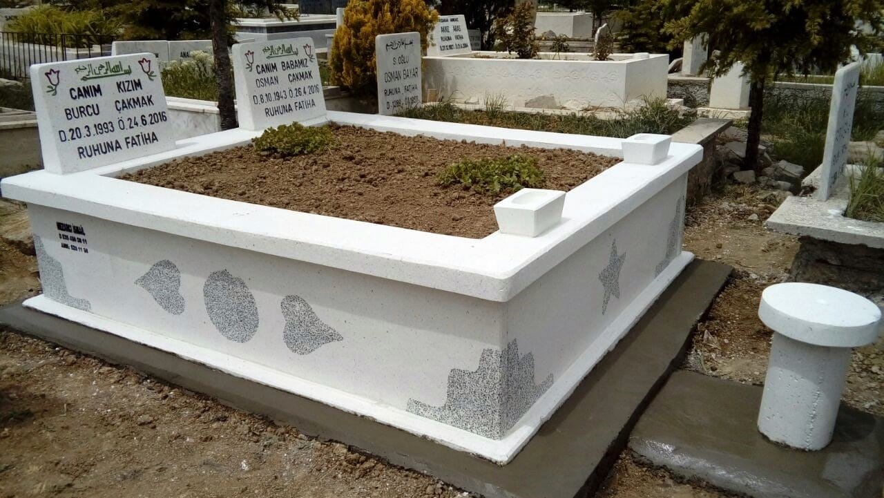 Çiftli Gold Mozaik Mezar; Gold Mezar çeşidimiziin Çiftlisidir.Orta kısmındaa sarı şerit geçirilmiş, farklı ve hoş görüntü kazandırılarak yapılmış bir mezar çeşitidir.Çok Satılan ve Hep sağlamlığı hemde görünümü itibariyle en doğru seçimlerden biridir.